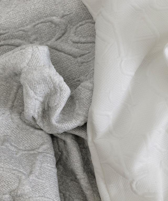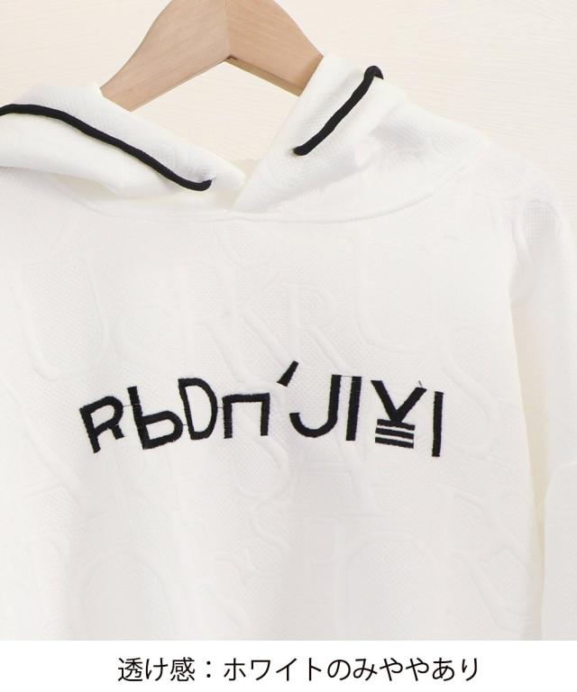 立体感ある同色のエンボス加工ロゴがアクセントになったオーバーサイズパーカー