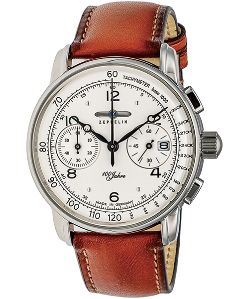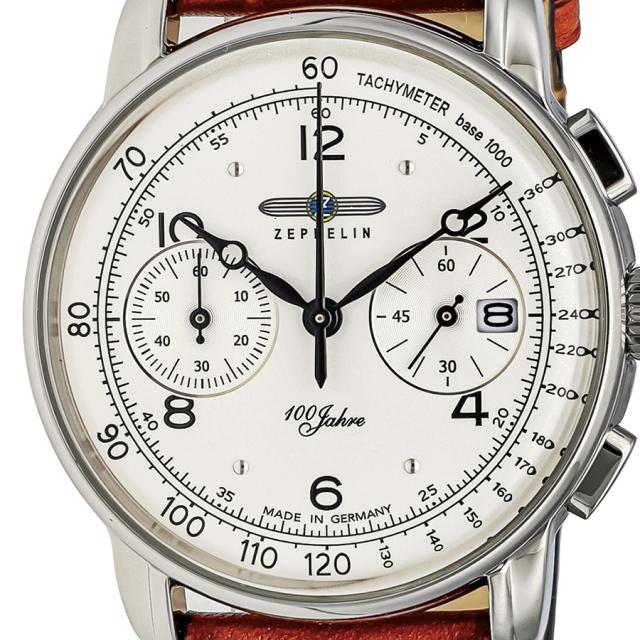 ツェッペリン 100周年記念シリーズ 8676-1 メンズ 腕時計 クオーツ クロノグラフ アイボリーダイヤル ブラウン 革ベルト
