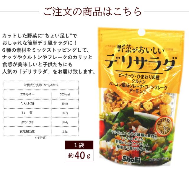 野菜がおいしい デリサラダ 40g 4袋セット チャック付き サラダトッピング ナッツ クルトン フレーク アーモンド ひまわりの種入り / クロネコゆうパケット便