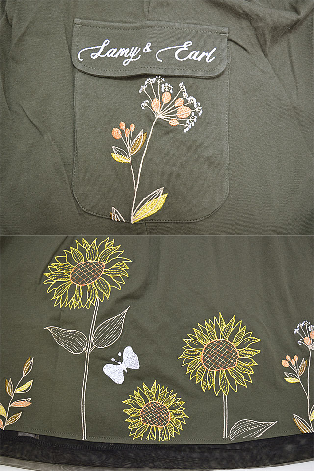 何でもあり、何でもやる新ブランド「LIN」から「ラミ&アール 向日葵満開スカート(AL-75733)」のご紹介です。 黒猫のLamy(ラミ)とネズミのEarl(アール)。 裾にチュールを配したロング丈のスカートが登場しました。 フラップ付きのポケットを2つ配しました。 ウエストはゴムになっており、楽に穿いて頂けるつくりになっています。 | |||||||||