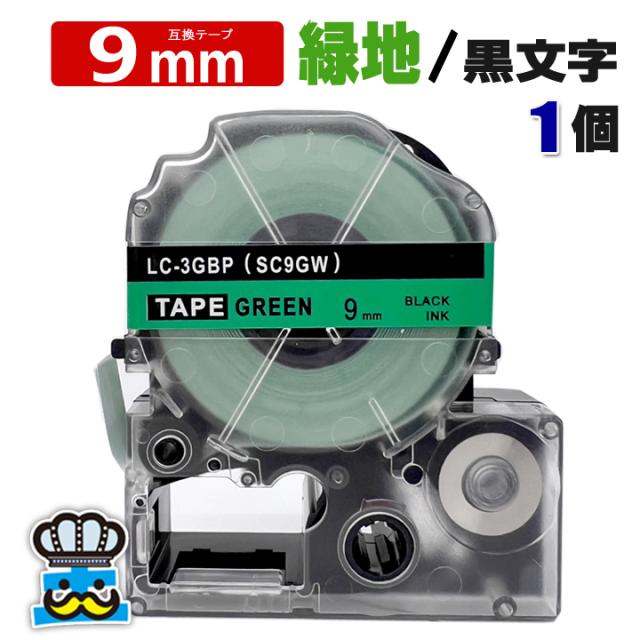 テプラテープ 9mm 緑 黒文字 SC9GW 1個 互換 キングジム対応 強粘着 9mm テープ幅 緑地 / 黒文字 テプラPRO用 互換品 テプラ PRO 互換テープ 長さ 8m ラベルライター ラベルプリンター TEPRA PRO 用 互換テープカートリッジ お名前シール 名前シール テープ