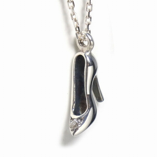 -シルバーハイヒールネックレス- つま先部分にダイヤモンドを1石セットしています。43cm〜38cmのチェーンで女性向けに着用しやすい規格。