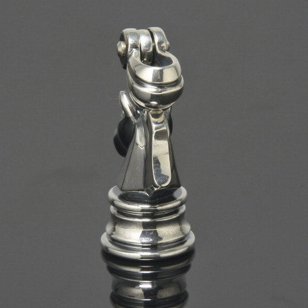 PUERTA DEL SOLの絶対的なアイコン、チェスナイト。ナイトはチェスゲーム内では唯一、他の駒を飛び越えられる攻撃的な存在であり、常にチャレンジャーとして、強い精神を持ち、攻めの姿勢を忘れないブランドであるためのシンボル。プエルタ・デル・ソルの最高傑作といえるアイテム。