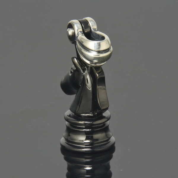 PUERTA DEL SOLの絶対的なアイコン、チェスナイト。ブラックモデルナイトはチェスゲーム内では唯一、他の駒を飛び越えられる攻撃的な存在であり、常にチャレンジャーとして、強い精神を持ち、攻めの姿勢を忘れないブランドであるためのシンボル。プエルタ・デル・ソルの最高傑作といえるアイテム。