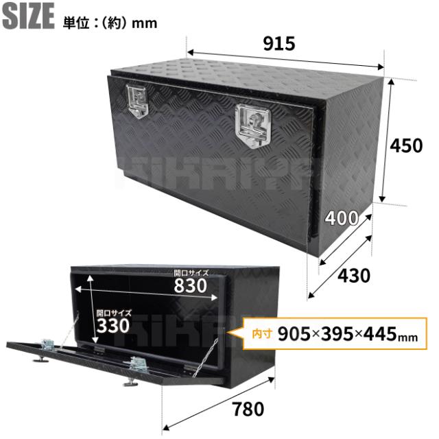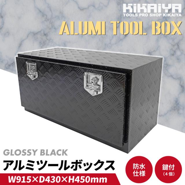 アルミボックス 915×430×450mm ブラック サイドボックス 艶あり アルミ工具箱 トラックボックス アルミツールボックス KIKAIYA