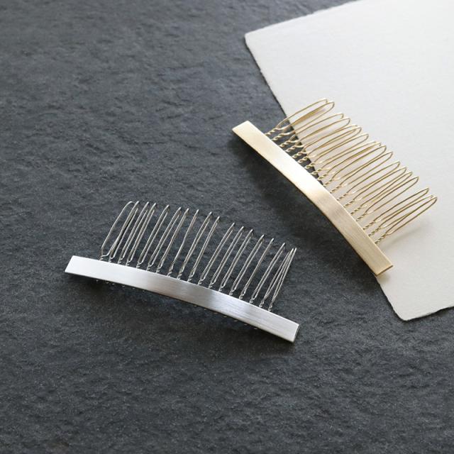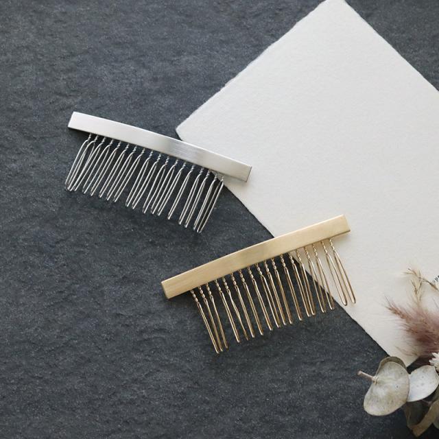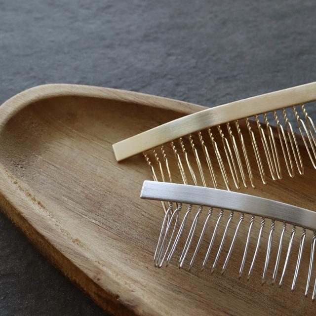 セミマットな質感が大人っぽくリッチな印象を与えてくれるメタルプレートのヘアコームです。