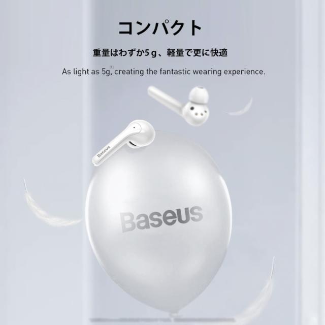 【Baseus】ワイヤレスイヤホン ENC クリア通話 Bluetooth5.0 ノイズキャンセリング HiFi高音質 iPhone Android 自動ペア 両耳/片耳