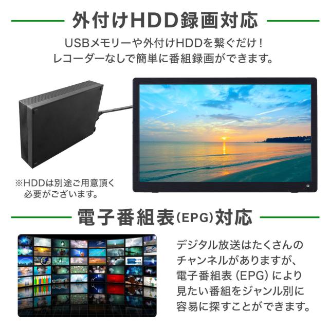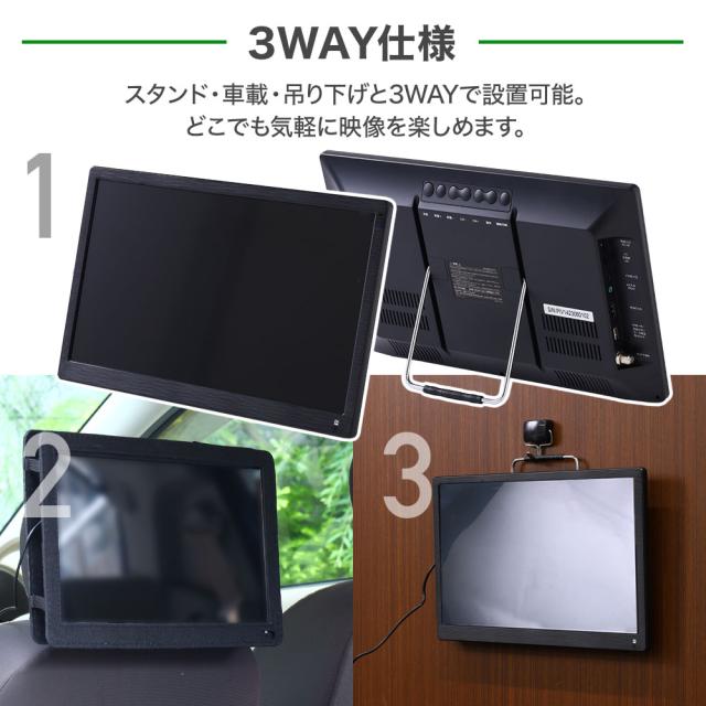 録画機能搭載液晶テレビ フルセグ ワンセグ 自動切替 14インチ AC DC 3電源 車 ドライブ 移動 自宅 キッチン リビング 子供 操作 簡単 音楽 動画 画像