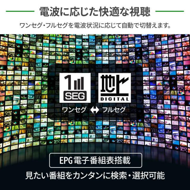 視聴環境に応じて自動でフルセグ、ワンセグを変更するので電波状況に応じた快適な視聴ができます。