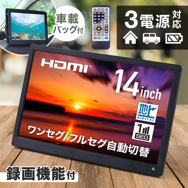 ポータブルテレビ フルセグ 車載 14型 HDMI 搭載 14インチ 地デジ録画機能 本体 14V型 地デジワンセグ自動切換 録画 液晶 テレビ ポータブル 500GB 録画搭載 番組表 EPG 地上デジタル放送