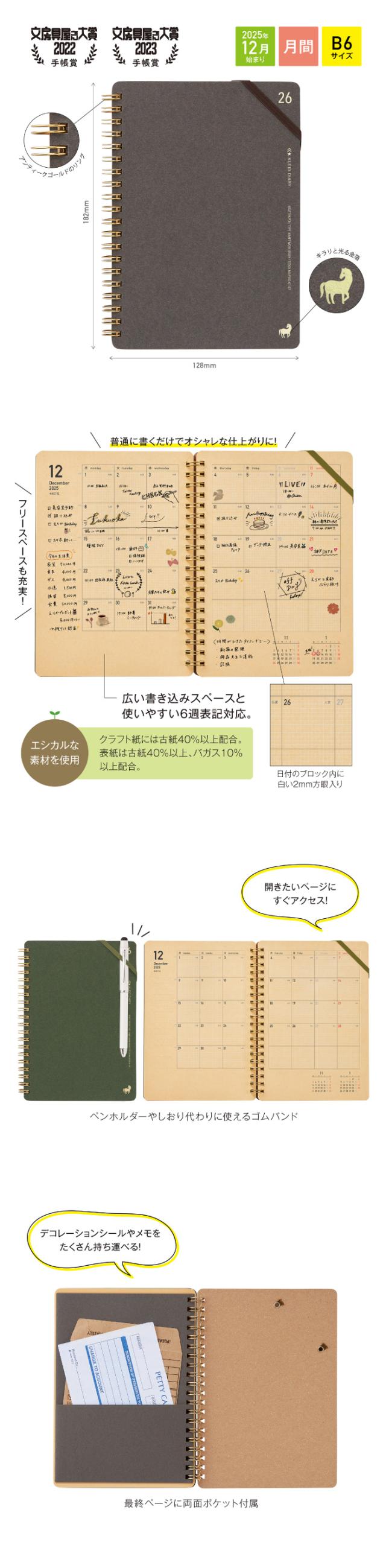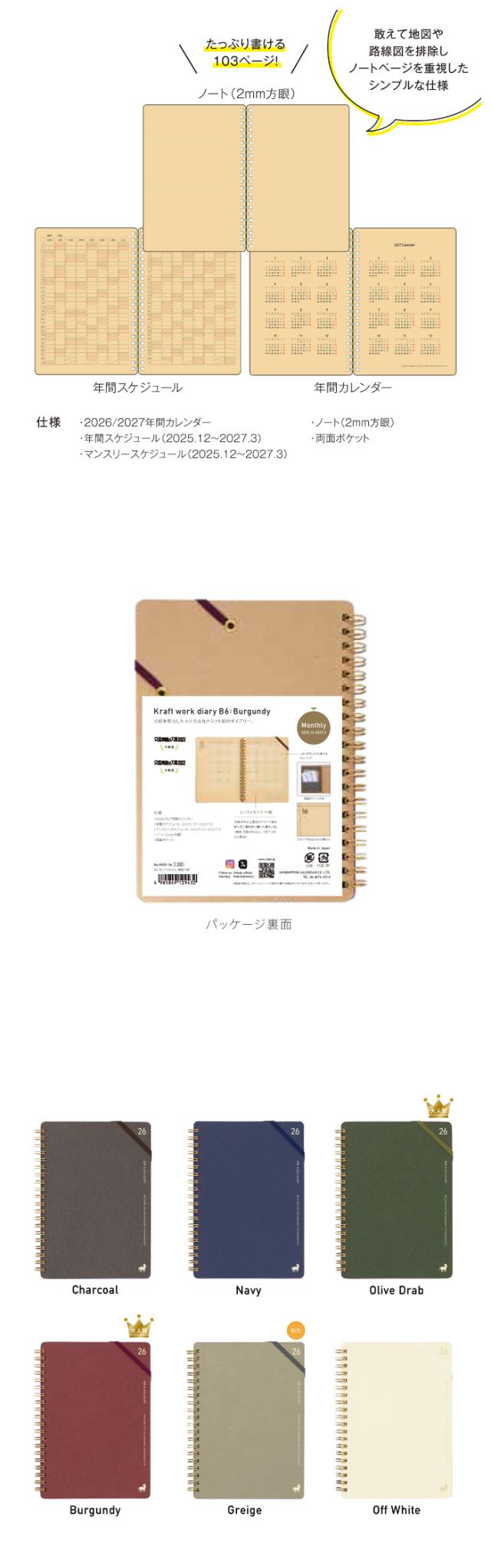 ■Kraft work diary B6 2026 マンスリー 商品詳細
