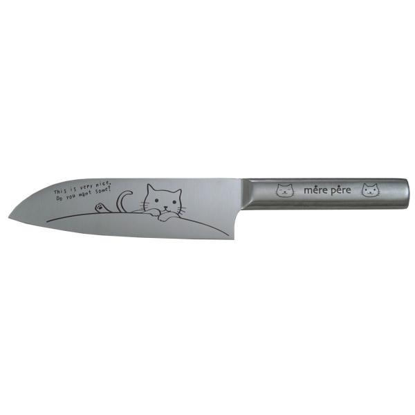 メルペール オールステンレス 三徳包丁 ネコ (770-305) かわいい 猫柄 モリブデンステンレス鋼 刃渡り約17cm
