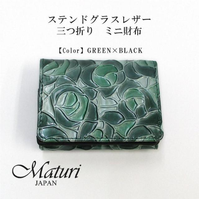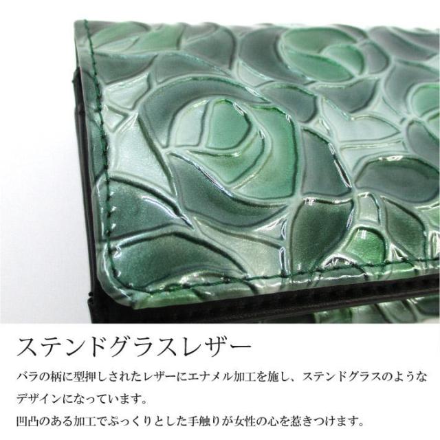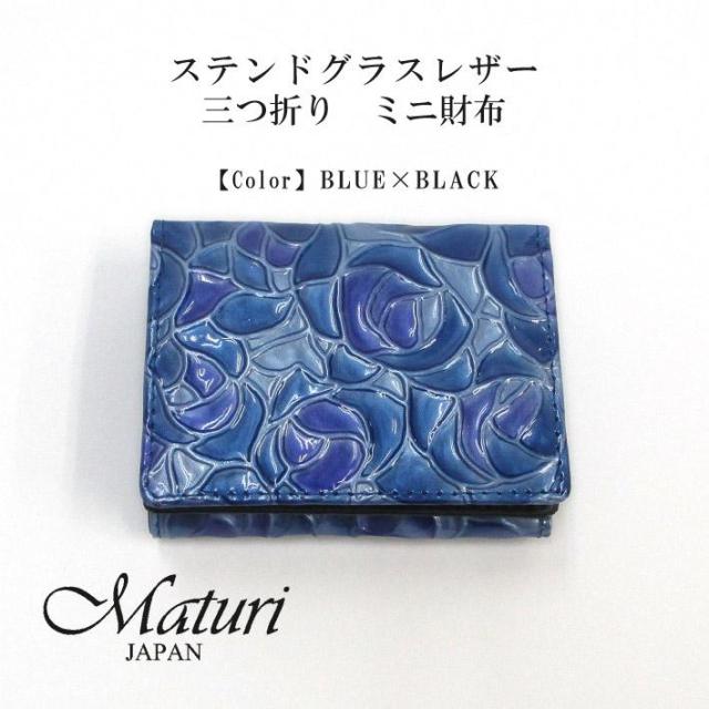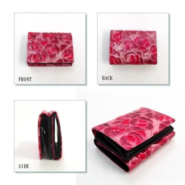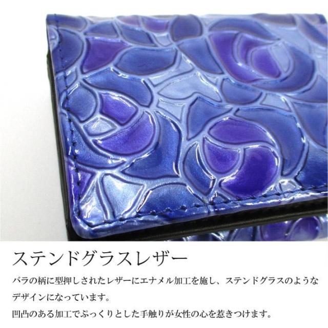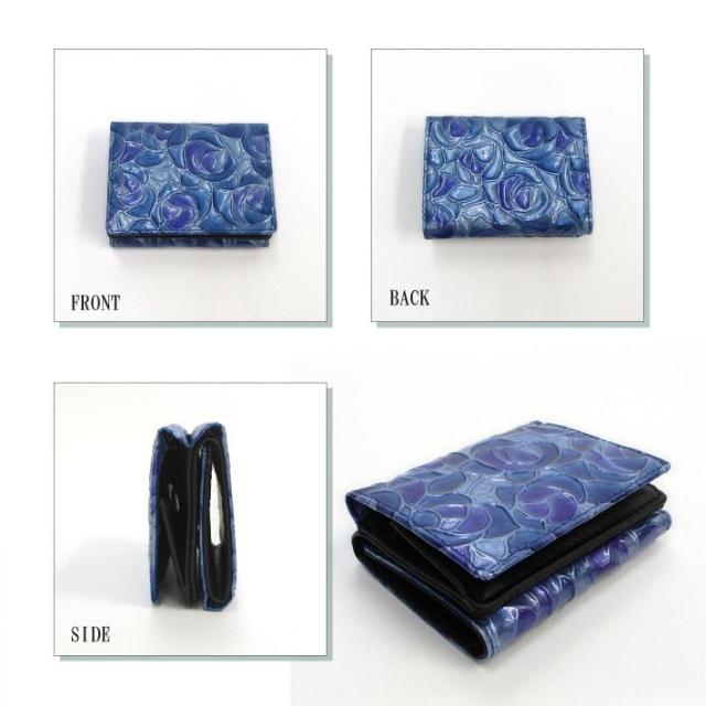 ミニ財布 三つ折り レディース 小さい財布 ステンドグラスレザー バラ柄 型押し エナメル加工 牛革 ブランド コンパクト MR-104 ブルー グリーン ピンク 女性