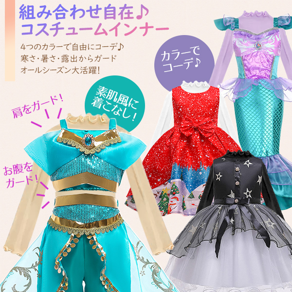 【最安値挑戦中】ドレス インナー 2枚組 魅せられる コスチュームインナー コスプレ カットソー シャツ ドレス 仮装 ハロウィン パーティ 肌色 肌着 インナー トップス フリル メロウフリル あったか 伸縮性 長袖 衣装 子供 プリンセス ネコポス送料無料