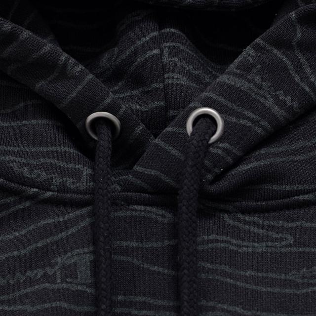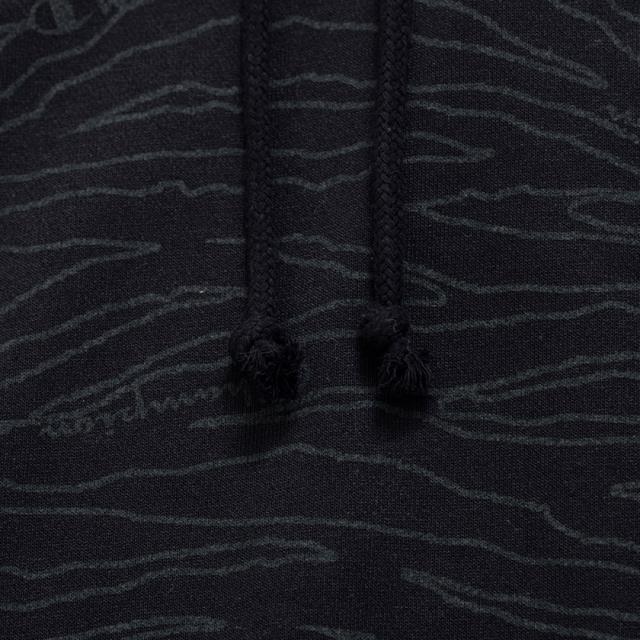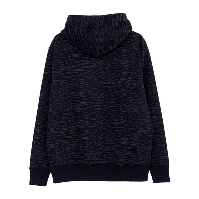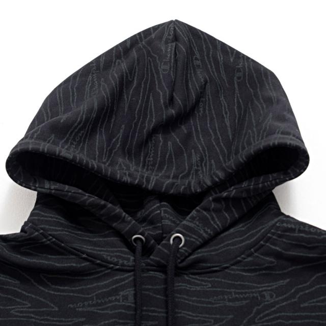 SILVER BULLET(シルバーバレット)にChampion【チャンピオン】フーデッドスウェットシャツが入荷しました。環境に配慮されたリサイクルポリエステル100%で、従来のコットン100%に比べて形状安定性、速乾性に優れた生地を使用した総柄プリントのフーデッドスウェットシャツです。