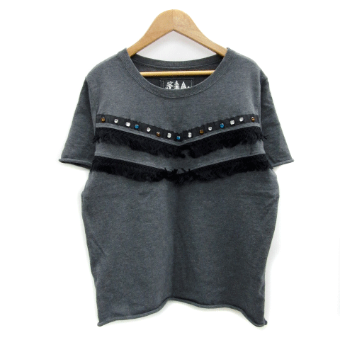 【中古】アズノウアズ ドゥバズ Tシャツ カットソー 半袖 ラウンドネック ビジュー フリンジ風 F グレー レディース