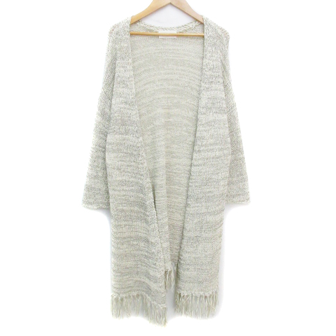 【中古】フレームワーク ニットカーディガン 薄手 ロング丈 前開き フリンジ 総柄 F アイボリー 黒 レディース