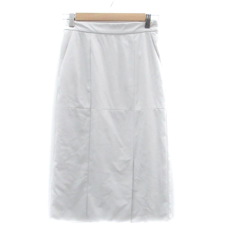 【中古】インディヴィ INDIVI フェイクレザースカート フレアスカート ロング丈 38 ライトグレー /HO42 レディース