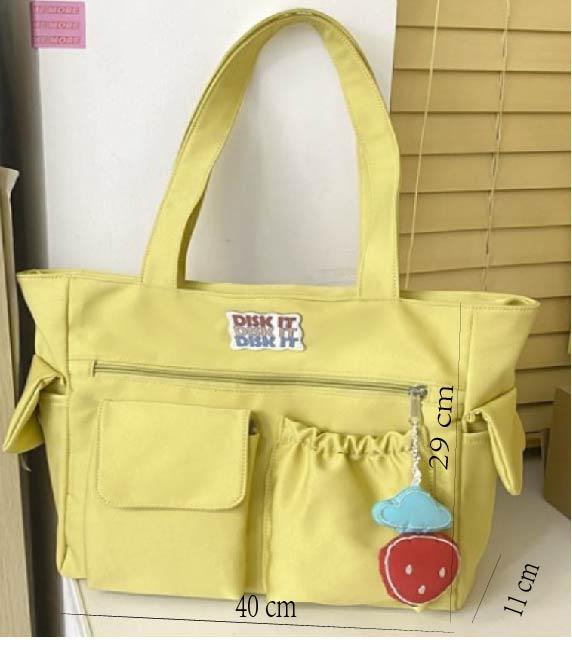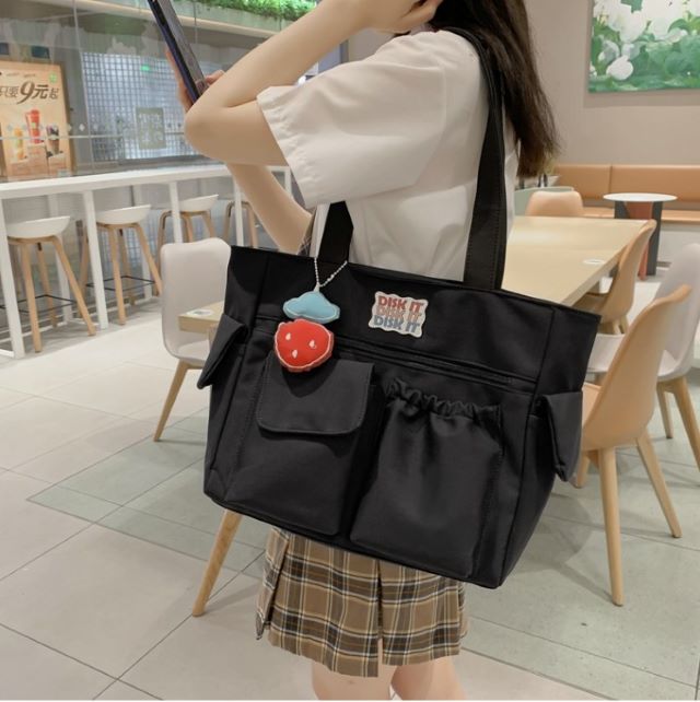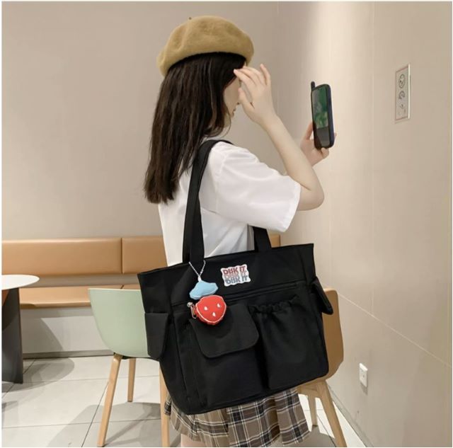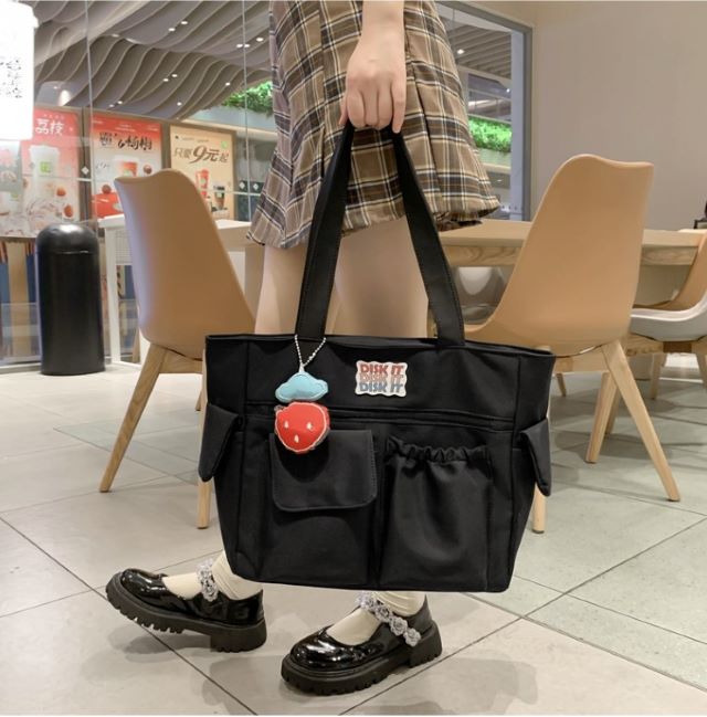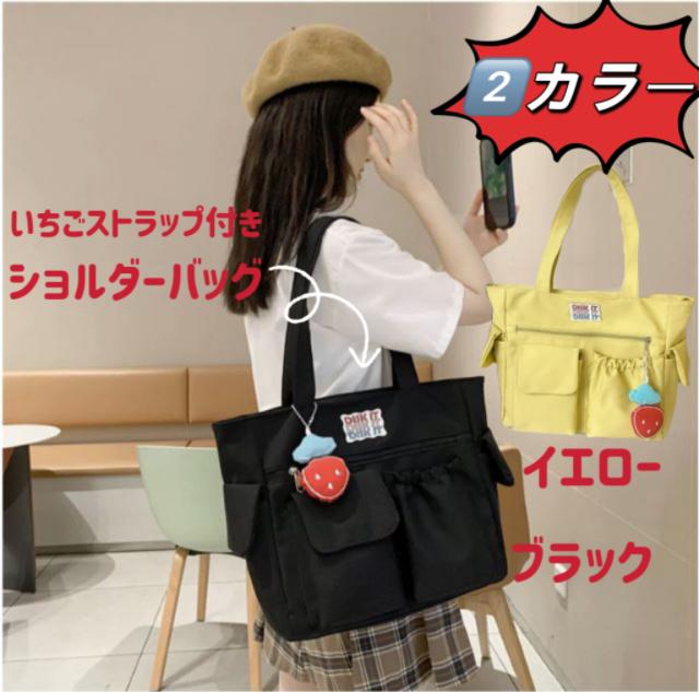 ショルダー トートバッグ ファスナー 付き 無地 いちごストラップ付き 大容量 A4 軽量 通勤 通学 ビジネス 大学生 多機能 便利 人気 おしゃれ 可愛い 女性 レディース マザーズバッグ プレゼント