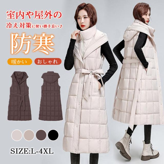 中綿ベスト レディース ロング丈コート 厚手 暖かい 女性用 秋冬 防寒 ゆったり 20代 30代 40代 防寒着 おしゃれ防寒ベスト 袖なし フード付き 暖かい ロング丈 カジュアル 冬服 ナチュラル 大きいサイズ ポケット付き 体型カバー羽織り あったか 着膨れしない 羽織り物 秋冬 新作 冬コーデ 厚手 保温 発熱 カジュアル 旅行 通勤 通学 着痩せ 体型カバー ほっこり温暖 オシャレ 上品 きれいめ