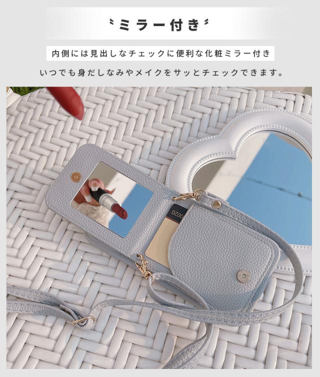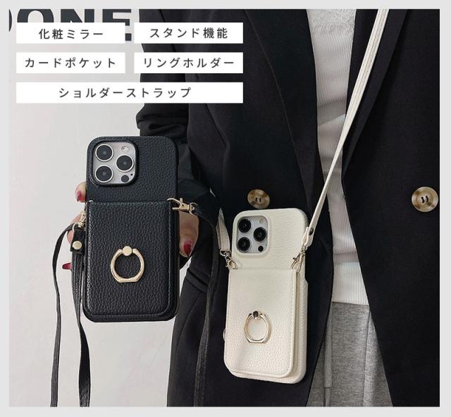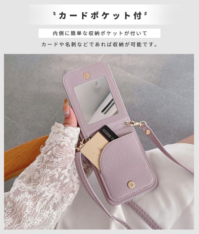 iphone 15promax ケース ショルダーストラップ ミラー付き 鏡付き iPhone15 15Plus 15Pro 14Pro 13 12ProMax 15 Pro 11 Pro Max ケース スマホケース ストラップ あいふぉん15ケース アイフォン15 カバー ショルダータイプ スタンド カードポケット くすみカラー 肩掛け