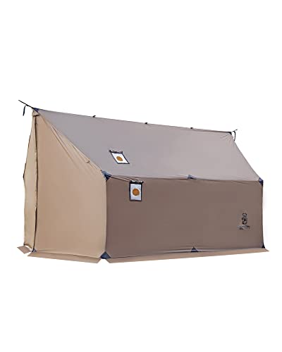 PUコーティングされた頑丈な70Dナイロン(軽量、引裂き防止、耐水圧3000mm )、高品質なYKKジッパーを使用しています。<br>使用サイズ:3.8m*2m*1.9m すべての標準サイズのシングルハンガーが適しています。<br>3シーズンのキャンプや冬場のキャンプに適しており、装備や衣類の乾燥を維持することができます。<br>OneTigrisTIGERROARテントストーブと互換性のある、ストーブジャックがついています。<br>この製品はキャンパーを風雨から完全に保護できるのタープです、パッケージには写真中のハンモック付属していません、ご了承ください。<br>◆商品名:OneTigris TEGIMENハンモックオーニング&ホットテント (ブラウン)<br>