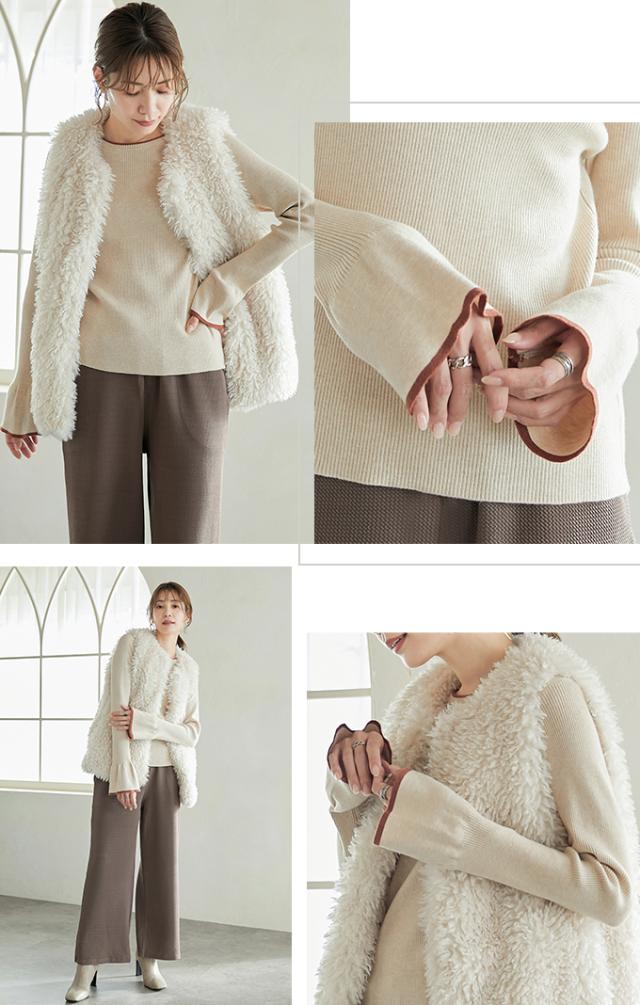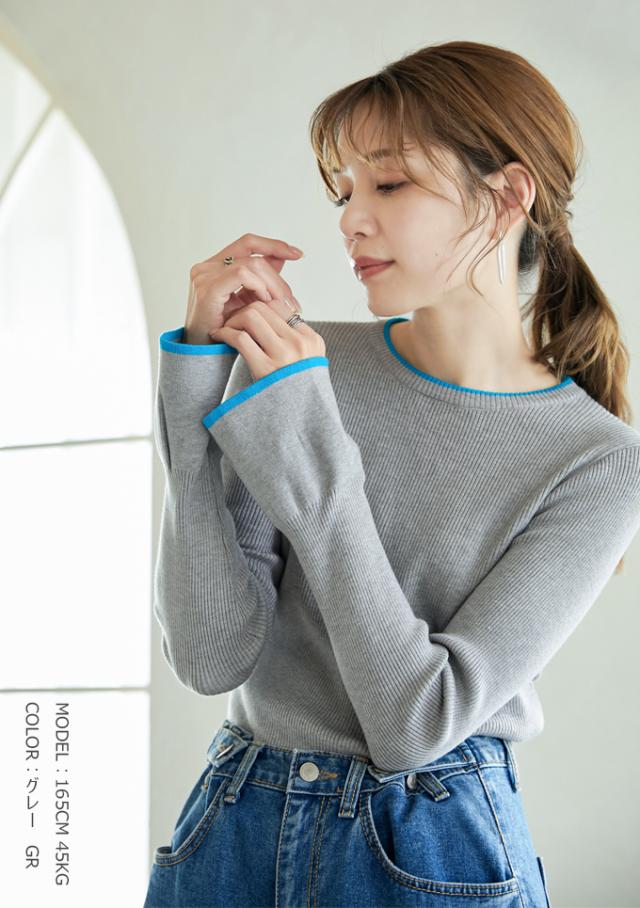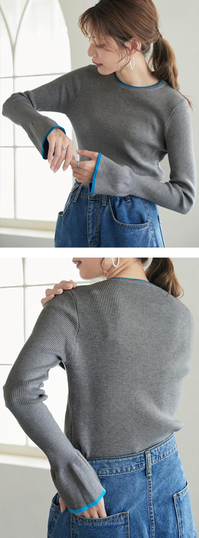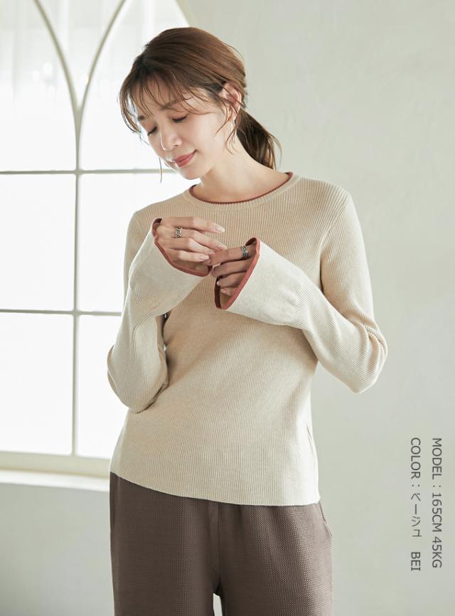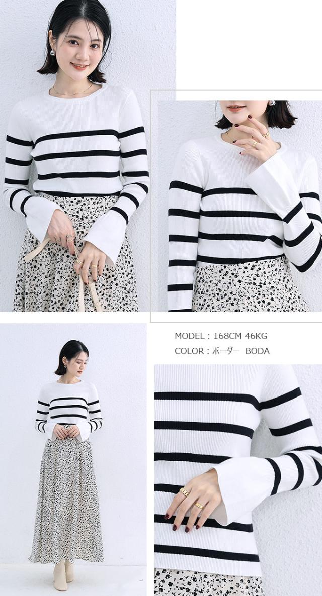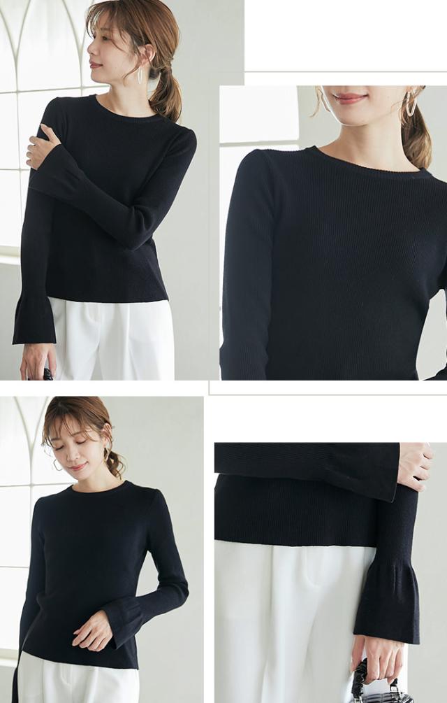 50%OFF、1990円リブニット フレア袖 ニット 春 フレアスリーブ バイカラー ニットソー ニットトップス レディース リブ Uネック ラウンドネック 着痩せ 華奢見え きれいめ シンプル 細見え 大人