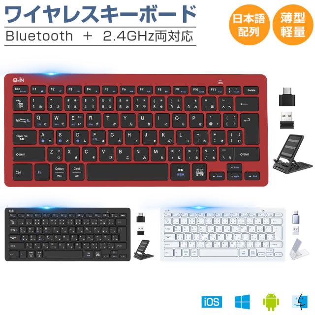【Bluetooth5.2+2.4GHz両対応】ワイヤレス キーボード JIS日本語配列 Bluetooth キーボード Type-C変換アダプター付 無線 キーボード パソコン タブレット スマホ Windows Mac iOS Android 4つシステム 4台デバイス 軽量 薄型 静音 技適認証済 Ewin 送料無料