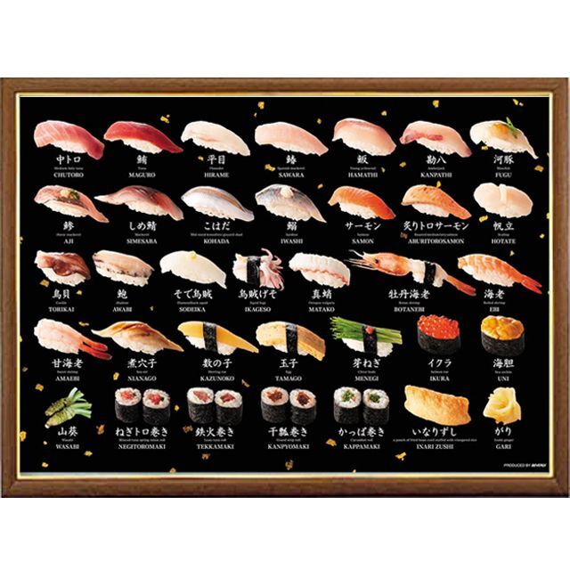 「鮨ジグソーパズル」300Pフレーム(ウォールナット)セット (アートジグソー 日本食雑貨小物 鮨ネタアート日本土産)