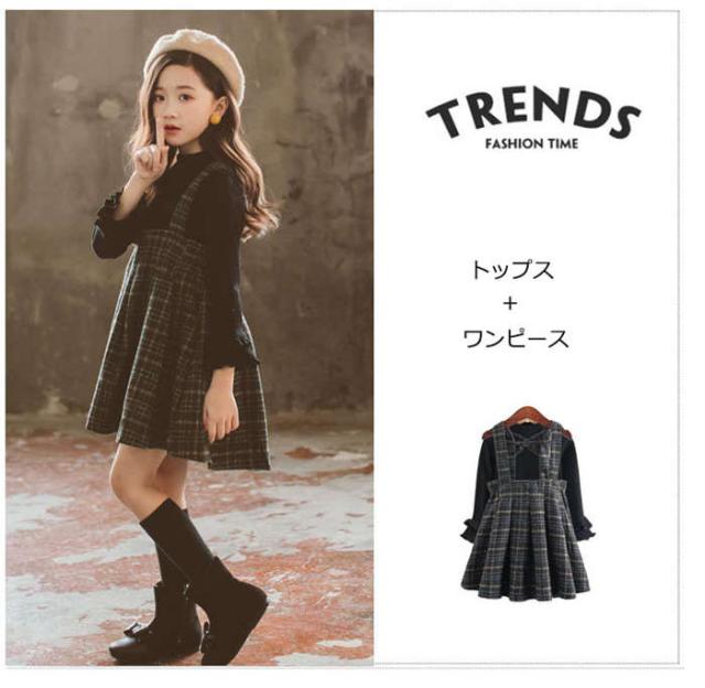 商品名:子供服 女の子 セットアップ tシャツ サロベット スカート 長袖 秋冬キッズ 2点セット 上下セット 韓国子供服 子ども服 冬物 小学生 通学着 通園着 子供セットアップ カジュアルセット ジュニア服 女児 学院風 大人っぽい 七五三 学生服 女子高生 卒園式 発表会 110cm-160cm