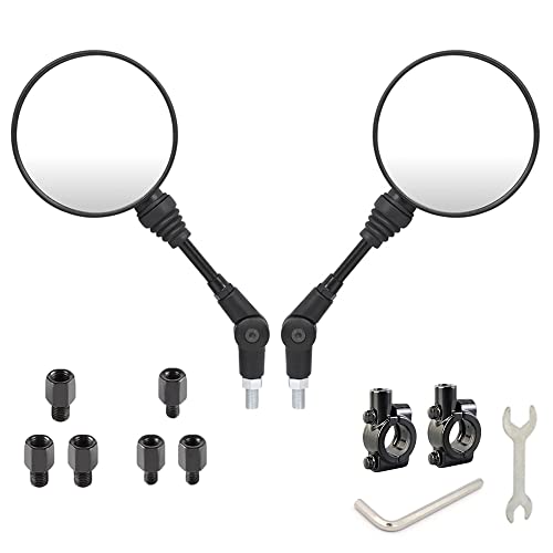 J.H.T バイクミラー 丸型ミラー 可倒式 角度調節 折り畳み式 10mm 正ネジ 汎用 左右セット