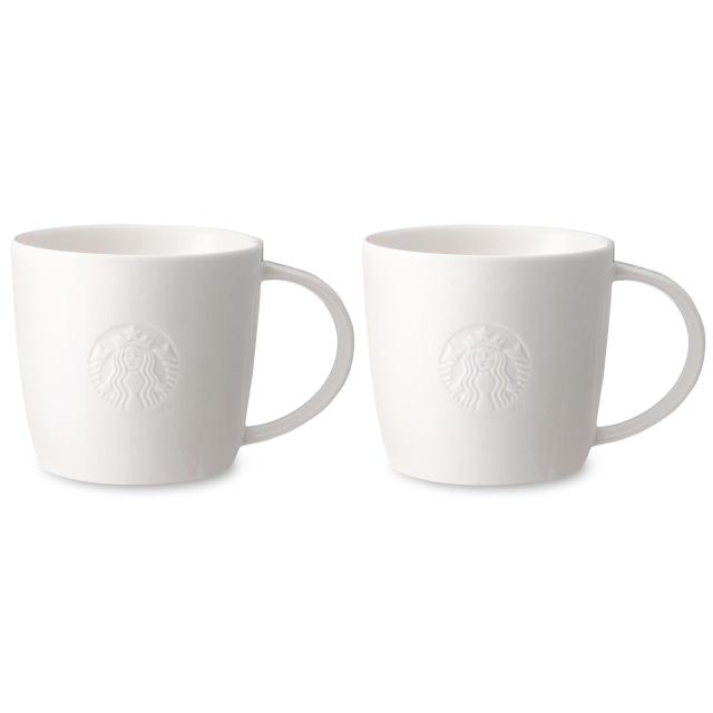サイレンロゴが彫りこまれたマグ。<br>スターバックスのロゴが白いボディにシンプルにあしらわれた、店内と同じマグカップです。<br>ハンドル上部には、サイズを示すShortの「S」の文字が刻まれています。どなたにも好まれるデザインなので、プレゼントにもおすすめです。<br>※当商品における310mlの表記はカップの縁ぎりぎりまで注いだ際の容量になります。カップ裏に刻印してある容量はカップに7割半程度注いだ際の容量です。<br>当商品はペアセット(マグ×2個)になります。同じデザインでサイズ違いもあります。<br>◆商品名:スターバックス ロゴマグ(310ml) ペアセット Starbucks coffee 310ml×2<br>説明<br>新品未使用品です。ペアセット(310mlマグ×2個)になります。