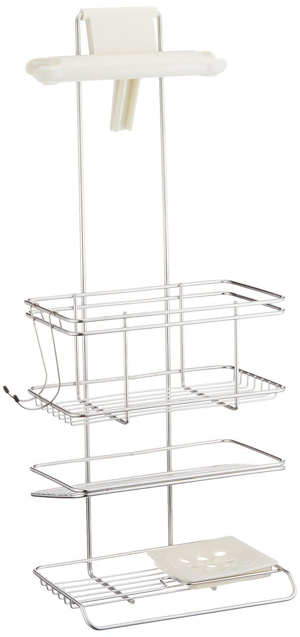 ◆商品名:Belca ステンレス シャワーラック 3段 幅22.4×奥行14.7×高さ55.9cm バス収納 FH-315<br>説明<br>商品紹介<br>シャワーフックにに取り付けるだけで浴用品を収納できます。<br><br>●シャワーフックが特殊タイプのフックには使用が出来ません