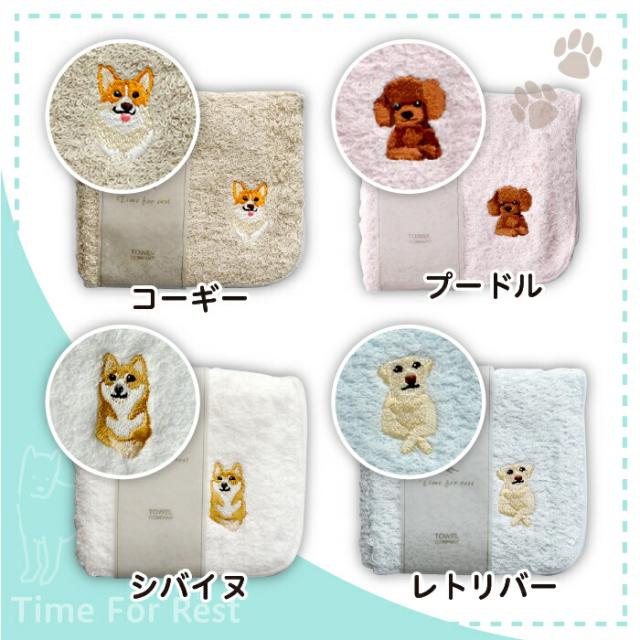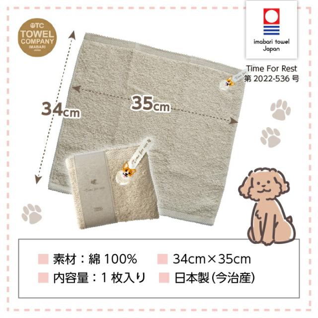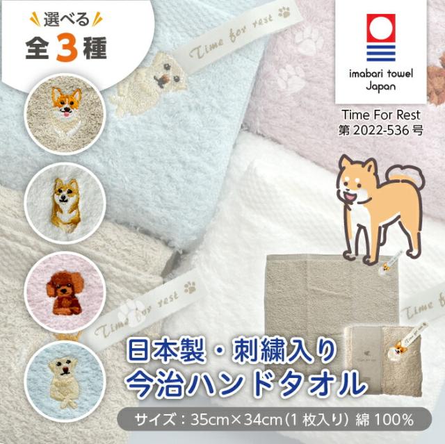 【選べる4種】今治タオル ハンドタオル Time For Rest 35×34cm 犬 刺繍 刺繍入 日本製 コーギー プードル シバイヌ 柴犬 ラブラドール レトリバー 動物 今治 かわいい 可愛い 子ども こども 幼稚園 保育園 入園 卒園 大人 女性 男性 ギフト プレ