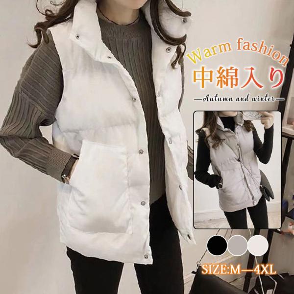 ベスト レディース 中綿ベスト ダウンベスト トップス フード付き 前開き 通勤 暖かい 防寒 秋冬 アウター 軽量 着痩せ アウトドア 送料無料