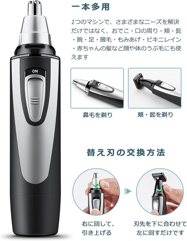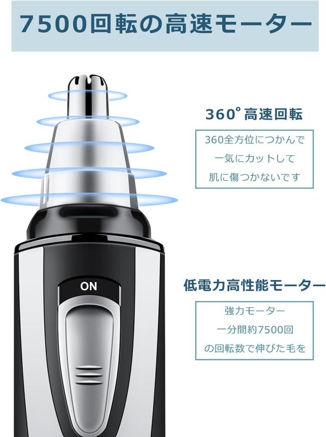 【携帯性と強力な動力】 強大な7500回転/分電機は360°両刃ブレードシステムに動力を提供し、低アレルギー性ステンレス鋼円筒形先端は、あなたの鼻の輪郭と一致し、安全、正確な切断、刺激や引傷がなく、迅速で快適な脱毛。