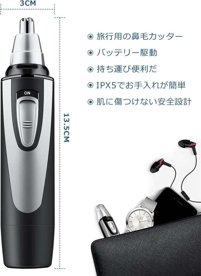 鼻毛カッター エチケットカッター メンズ はなげカッター 耳毛カッター 鼻毛切り 1台2役 水洗い可能 小型 持ち運び便利 低騒音 掃除用ブラシ付き