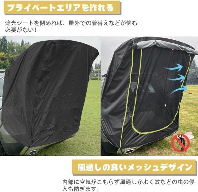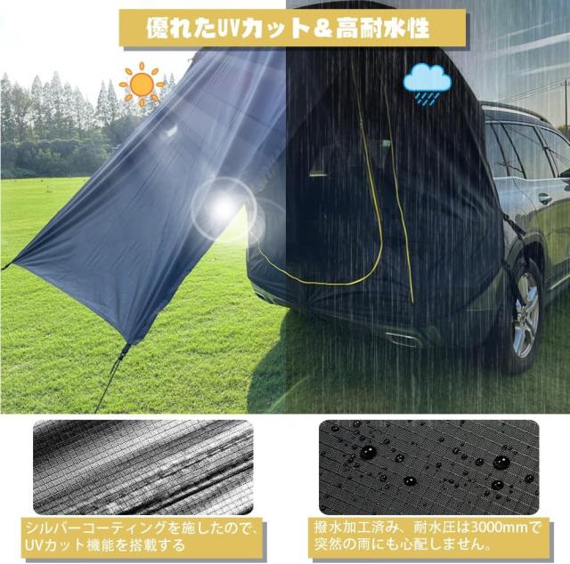 車用テント 車中泊テント トランクテント カーサイドタープ テールゲートテント 車と連結 キャンプ 日よけ UV