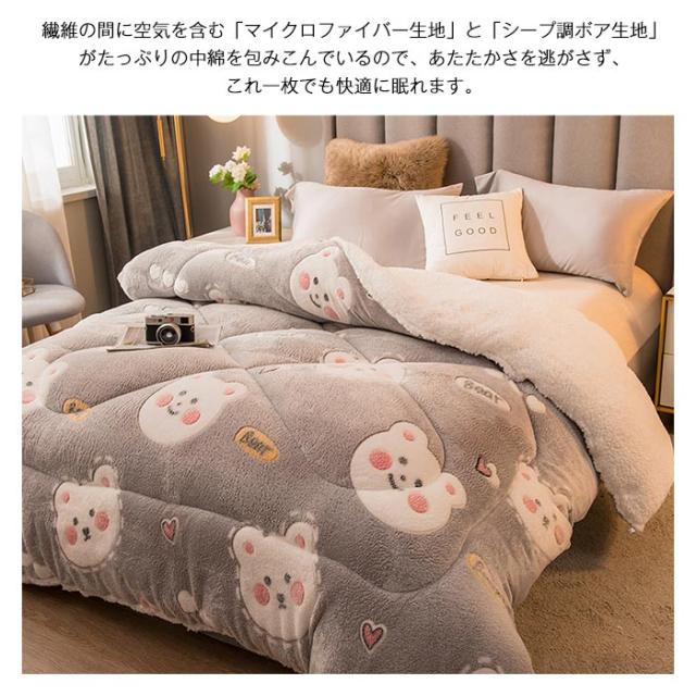 掛け布団 毛布布団 シープボア調 毛布 布団 中綿入り シングル ダブル キング マイクロファイバー フランネル あったか 保温 三層構造 厚手 ボア布団 ふわふわ 起毛素材 お昼寝 吸湿発熱 秋冬用 寝具
