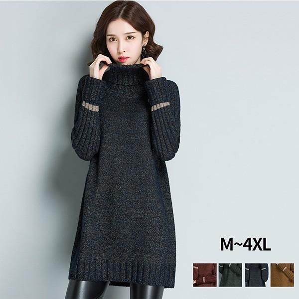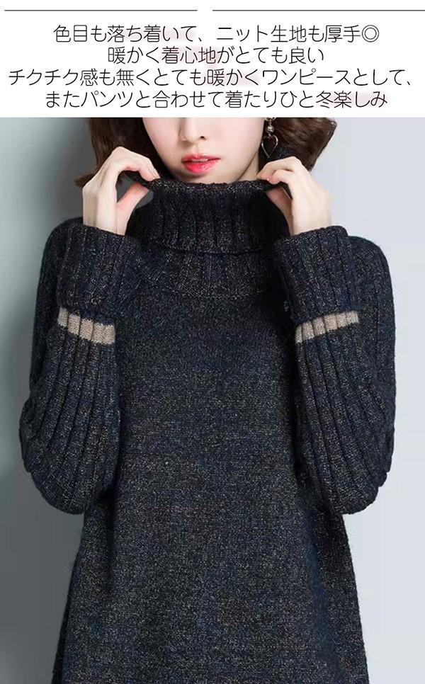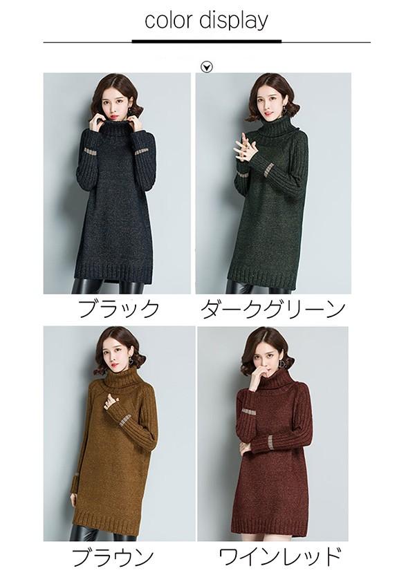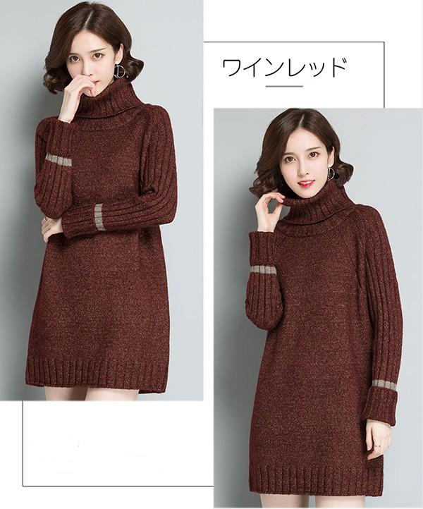 ニットワンピース 秋冬 チュニック 長袖 セーター トップス ニット 秋冬 ニットソー タートルネック ゆったり カジュアル ワンピース オシャレ 膝上丈 無地 大きいサイズ 黒 赤bs042s1s1l9