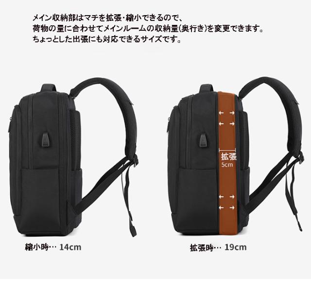 約幅30cm*高さ43cm*奥行14cm~19cm ■パソコン収納部サイズ:約幅28cm*高さ33cm*奥行2cm カラー:■Black/Navy/Grey