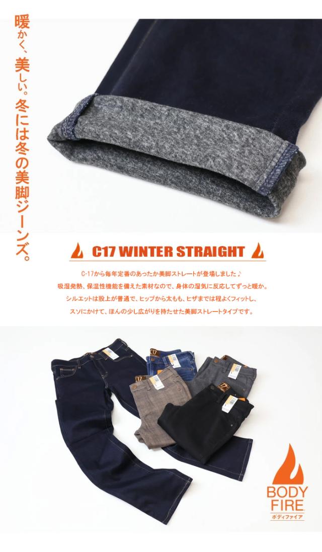 2025年秋冬 C17 レディース 暖パン ウインターストレート 秋冬用 暖かいジーンズ 暖かいパンツ 裏微起毛 ストレッチ デニム ジーンズ パンツ シーセブンティーン 送料無料 CW323