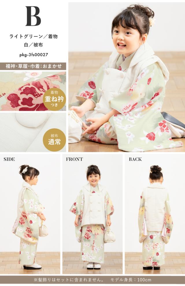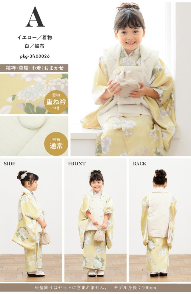 女の子の七五三やお宮参りにおすすめな女児用着物セットです。