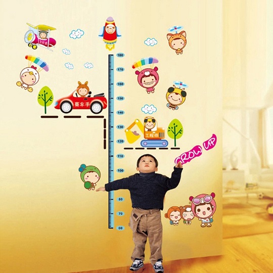 ウォールステッカー アニメ 乗り物 身長計 子供部屋 壁紙シール ロケット 車 ショベルカー 木 GROW UP 測れる 成長記録 ゲージ
