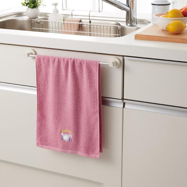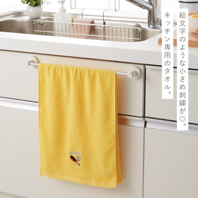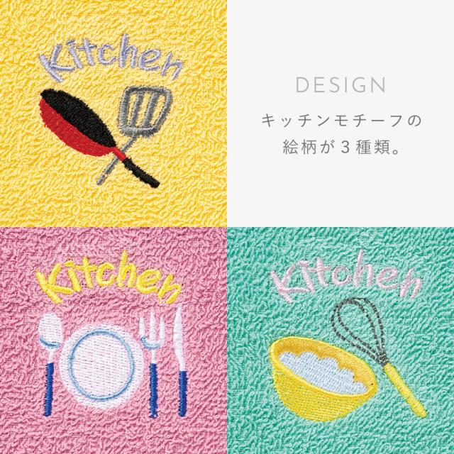 キッチンツールのモチーフのワンポイント刺繍が入った可愛いタオルセット。絵文字のようなわかりやすい絵柄も可愛く、見るとどこの場所で使うタオルかすぐにわかります。洗濯して入れ替える時にも便利です。