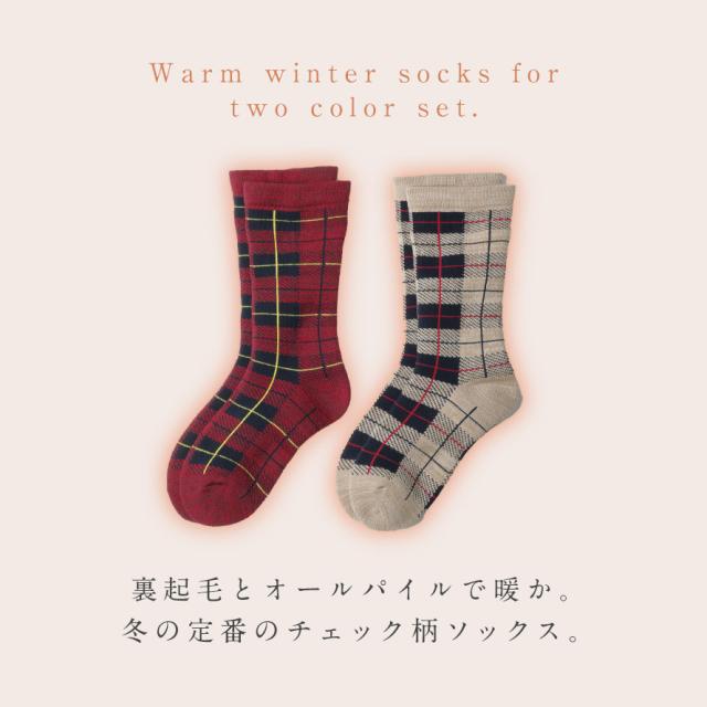 靴下 レディース 冬 暖かい 【2色組】 22-25cm チェック 裏起毛 長め 【 冬の定番・チェック柄ソックス 】 裏起毛ソックス ふわふわ あったか ソックス 冬用 秋冬 チェック柄あったか裏起毛ソックス