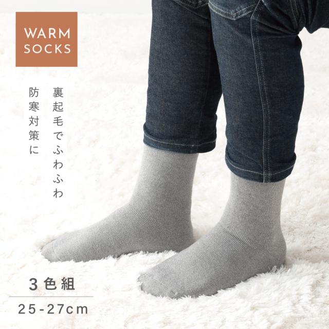 靴下 メンズ 3色組 25-27cm 冬 秋冬 裏起毛 厚手 暖かい おしゃれ 超裏起毛中厚メンズソックス