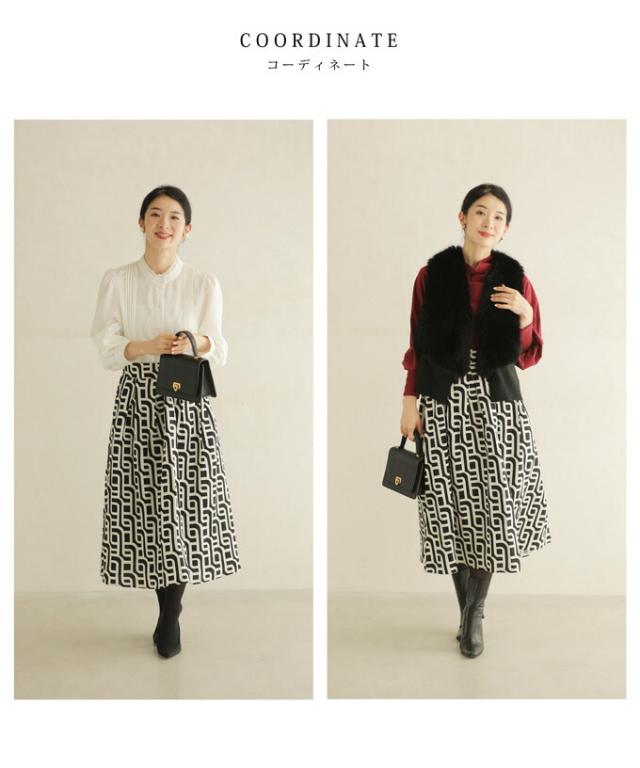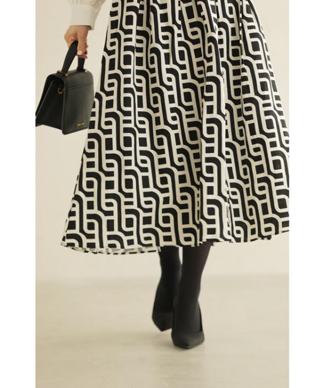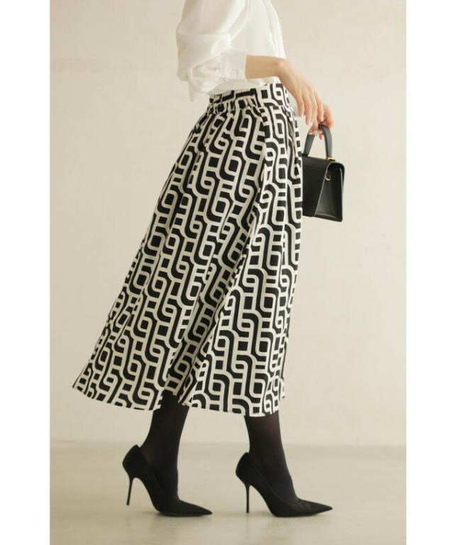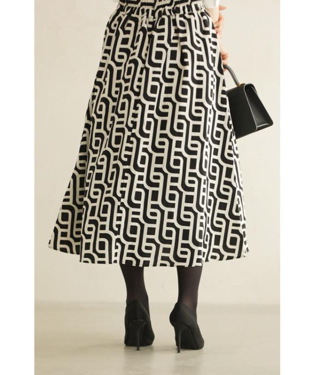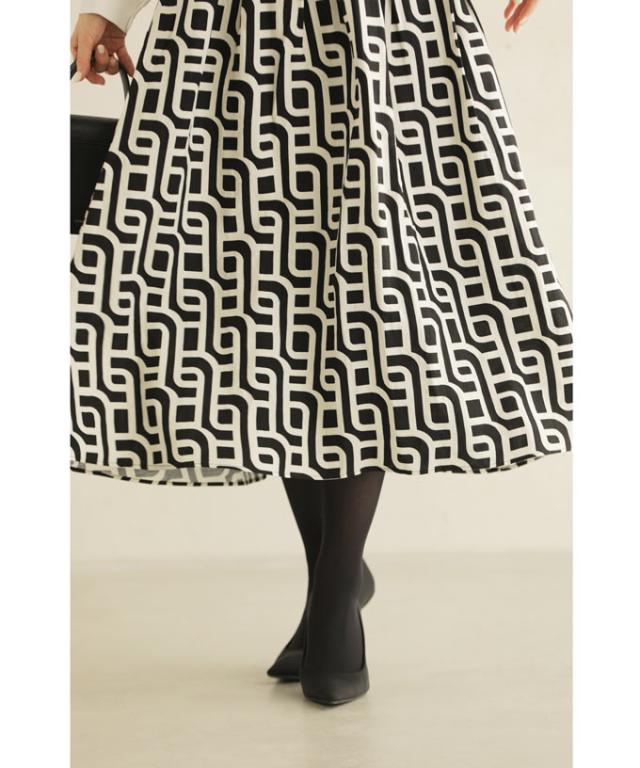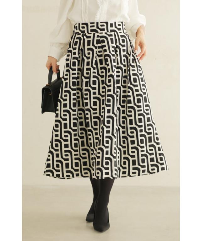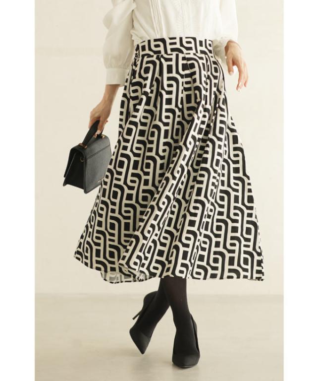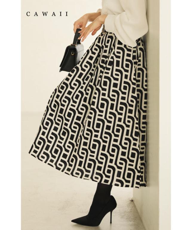 wkg00625 新作 新着 再入荷 CAWAII FRENCHPAVE フレンチパヴェ エレガント ベーシック カジュアル 可愛い かわいい カワイイ おしゃれ オシャレ お洒落 個性 個性的 定番 ベーシック 大人かわいい 大人可愛い 上品 女性らしい デザイン スタンダード ナチュラル きれいめ キレイめ シンプル フェミニン レディース レディースファッション 大人 ママ ミセス 30代 40代 50代 60代 らせん描く アーティスティックな タック ミディアム スカート Aラインスカート Aライン 後ろゴム S M L 2L LL XL フリーサイズ フリー 小さめ 小さめサイズ小さい 小さいサイズ 低身長 痩せ ほっそり 小柄 細身 標準サイズ 大きめシルエット 大きい 大きめ ビッグシルエット ぽっちゃり F サイズ自由 秋 冬 秋服 秋物 冬服 冬物 体型カバー 体型隠し 体型隠れる お尻隠し 太もも隠し ブラック 黒 黒色 柄 総柄 日常着 普段着 日常使い