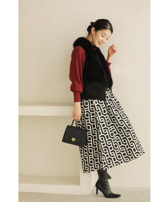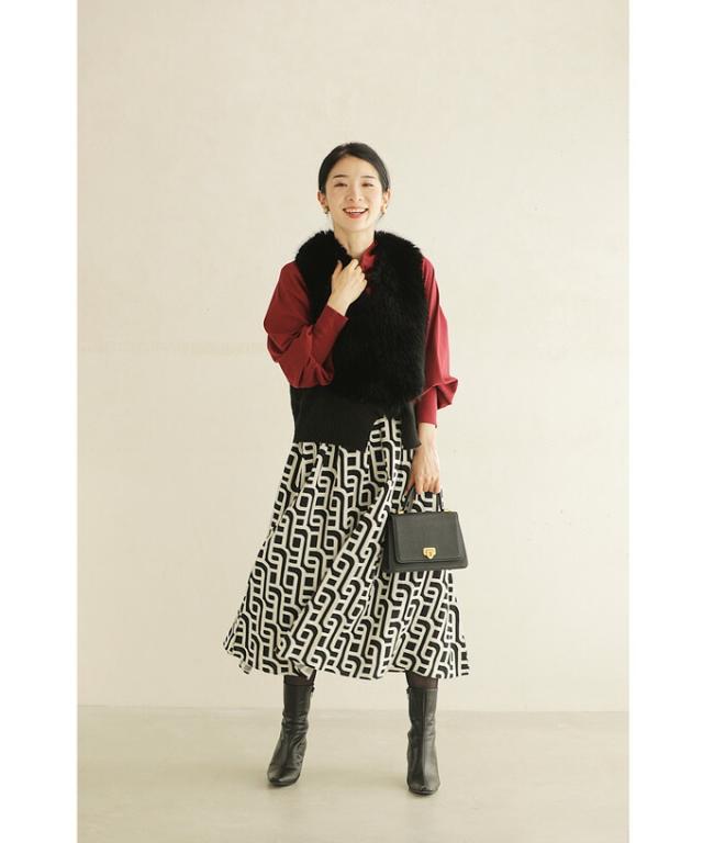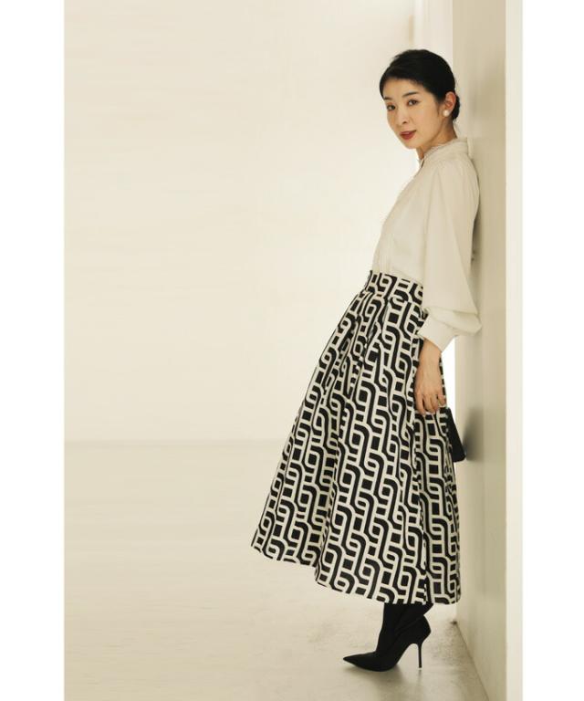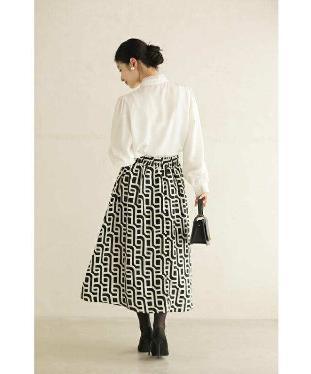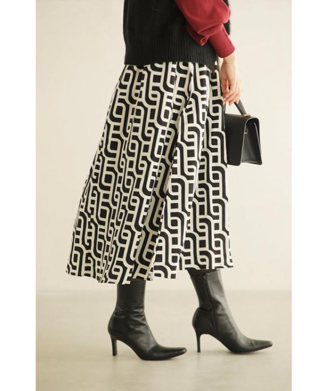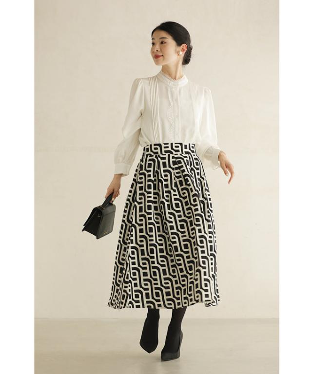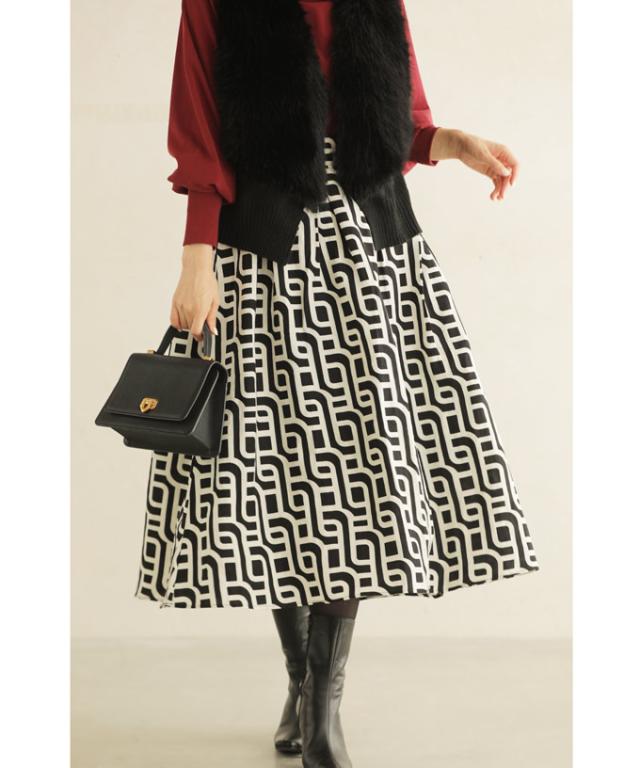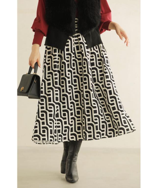 wkg00625 新作 新着 再入荷 CAWAII FRENCHPAVE フレンチパヴェ エレガント ベーシック カジュアル 可愛い かわいい カワイイ おしゃれ オシャレ お洒落 個性 個性的 定番 ベーシック 大人かわいい 大人可愛い 上品 女性らしい デザイン スタンダード ナチュラル きれいめ キレイめ シンプル フェミニン レディース レディースファッション 大人 ママ ミセス 30代 40代 50代 60代 らせん描く アーティスティックな タック ミディアム スカート Aラインスカート Aライン 後ろゴム S M L 2L LL XL フリーサイズ フリー 小さめ 小さめサイズ小さい 小さいサイズ 低身長 痩せ ほっそり 小柄 細身 標準サイズ 大きめシルエット 大きい 大きめ ビッグシルエット ぽっちゃり F サイズ自由 秋 冬 秋服 秋物 冬服 冬物 体型カバー 体型隠し 体型隠れる お尻隠し 太もも隠し ブラック 黒 黒色 柄 総柄 日常着 普段着 日常使い