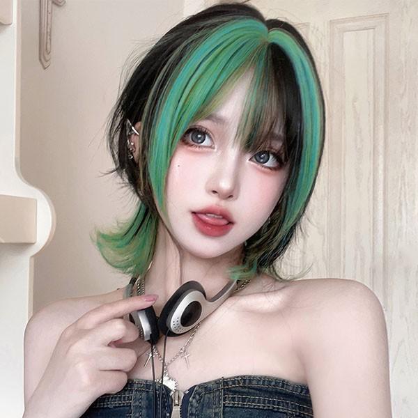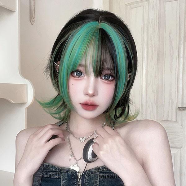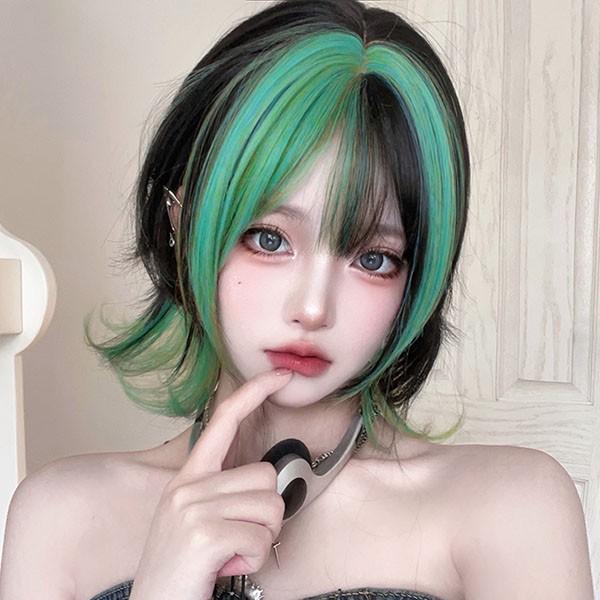ウィッグ メッシュ レディース フルウィッグ ミディアム ストレート ぱっつん前髪 前髪あり 可愛い かわいい 大人用 コスプレ ロリータ ゴスロリ コスチューム 原宿風 仮装 超自然 かつら wig Lolita 小顔 文化祭 イベント 学園祭 ハロウィン 緑 dq082n1n1zr